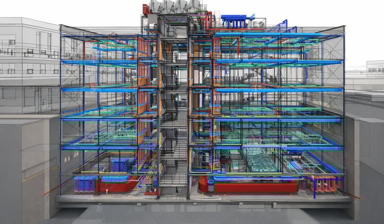 La coordinación BIM permite integrar arquitectura, estructura y especialidades (térmico, eléctrico, sanitario), detectando interferencias antes de la construcción, reduciendo errores, retrasos y sobrecostos en obra.